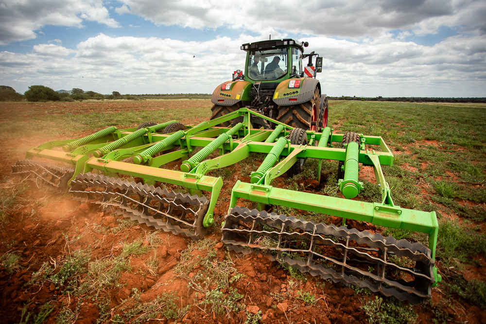Van der Linde’s T1000 ripper consists of eleven tines, each requiring 25 kW. Depending on soil conditions, the implement can work up to approximately 630 mm deep. This ensures adequate oxygen release into the soil for the crop to be planted. Additionally, ripping helps retain rainwater and prevents runoff.