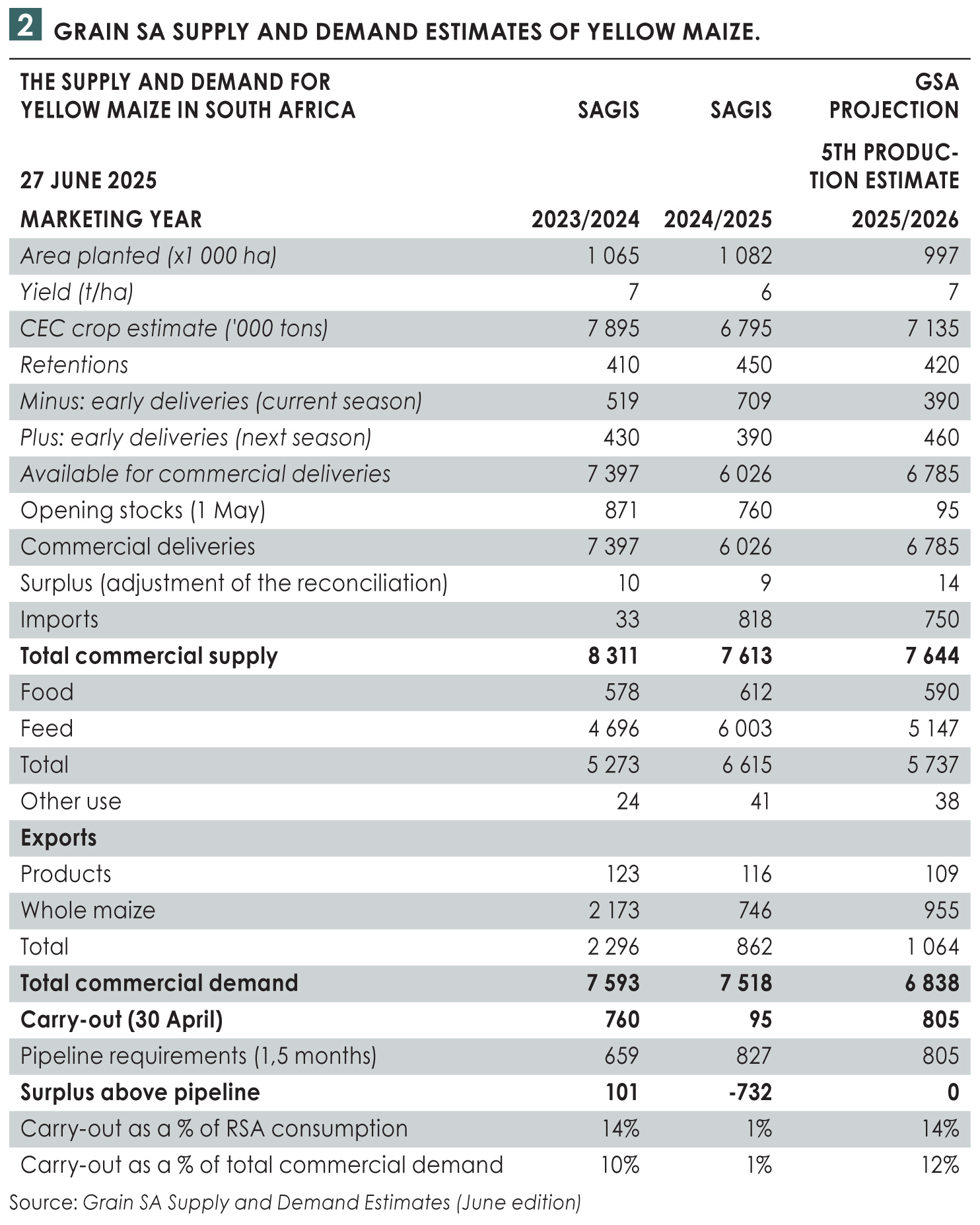 SOUTH AFRICA IS EXPECTED TO IMPORT YELLOW MAIZE AGAIN IN THE 2025/2026 MARKETING SEASON. THIS IS THE SECOND CONSECUTIVE SEASON WHERE IMPORTS ARE REQUIRED. SUPPLY AND DEMAND ESTIMATES INDICATE THAT THIS IS A SHORT-TERM CORRECTION FOLLOWING DROUGHT-INDUCED SUPPLY PRESSURES, AND NOT A STRUCTURAL SHIFT IN DOMESTIC PRODUCTION OR DEMAND.