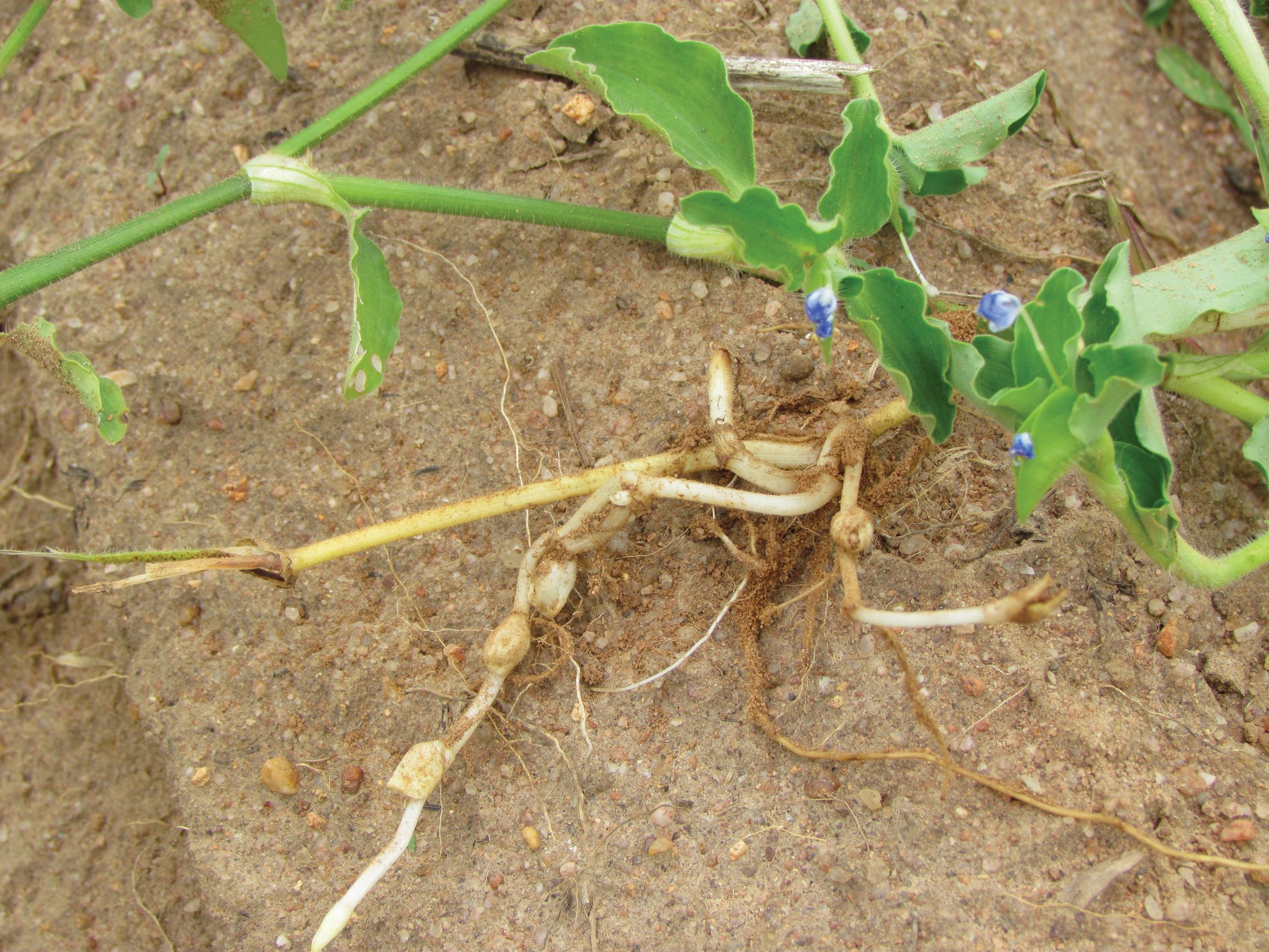 Commelina benghalensis (wandelende Jood) is uniek omdat dit bogrondse (pers van kleur) enondergrondse blomme (kakie van kleur) dra waarvan die sade verskillende temperatuurbehoeftes vir ontkieming het.