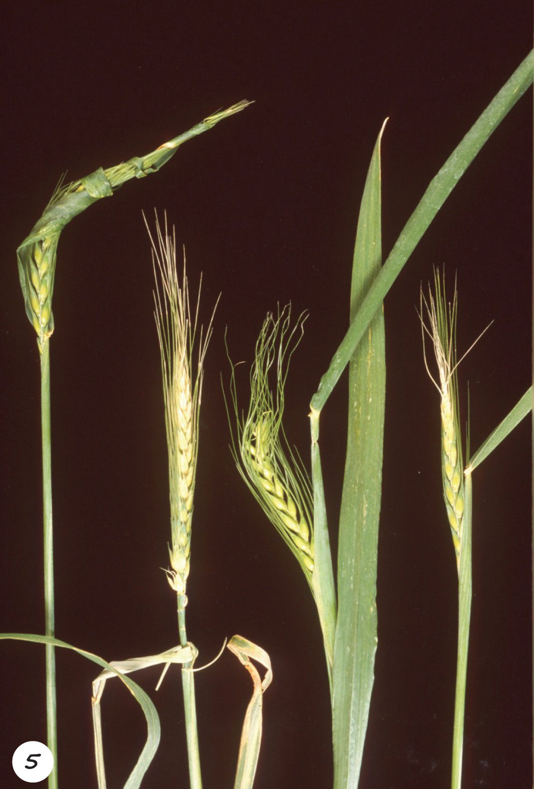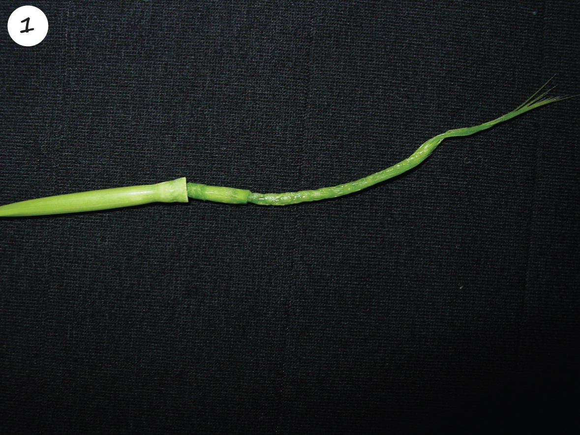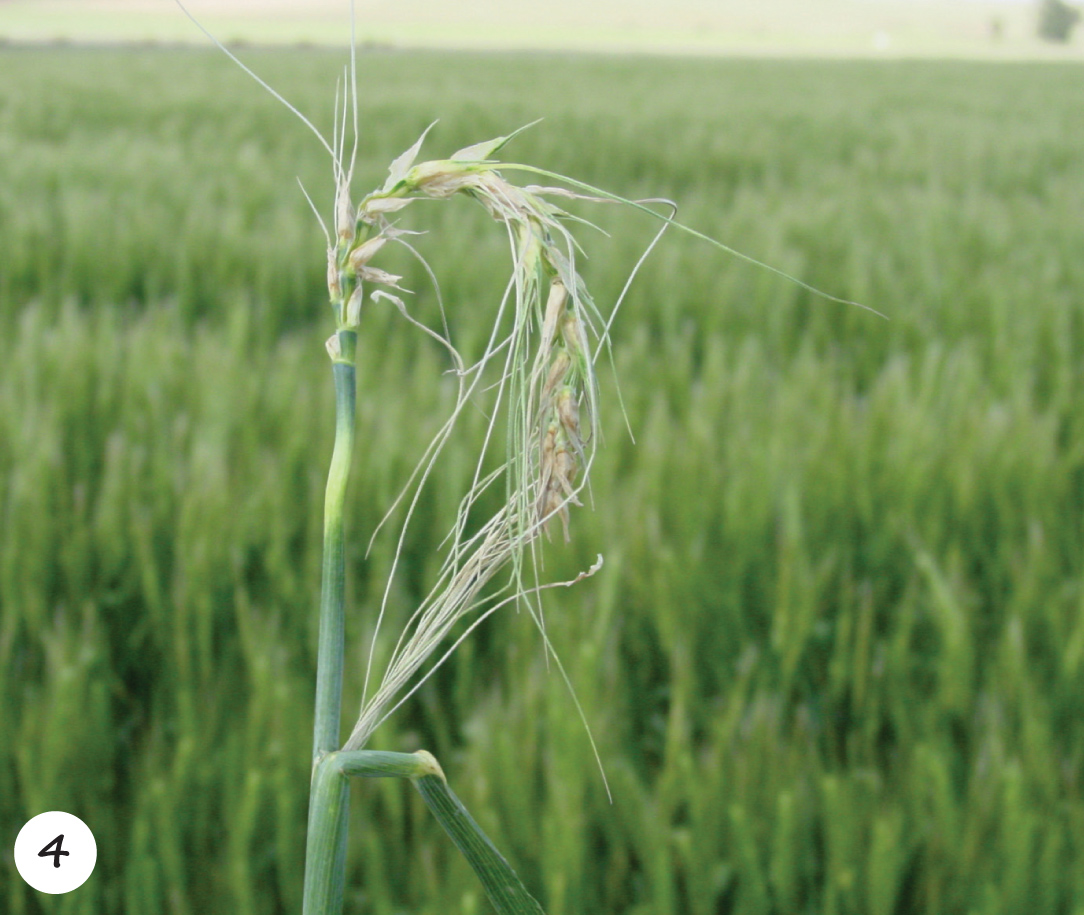 Algehele steriliteit en ’n aar waarvan die basis eerste verskyn nadat die baard in die vlagblaarskede vasgeknyp is. ’n Chlorotiese vlek is ook duidelik sigbaar aan die basis van die aar.