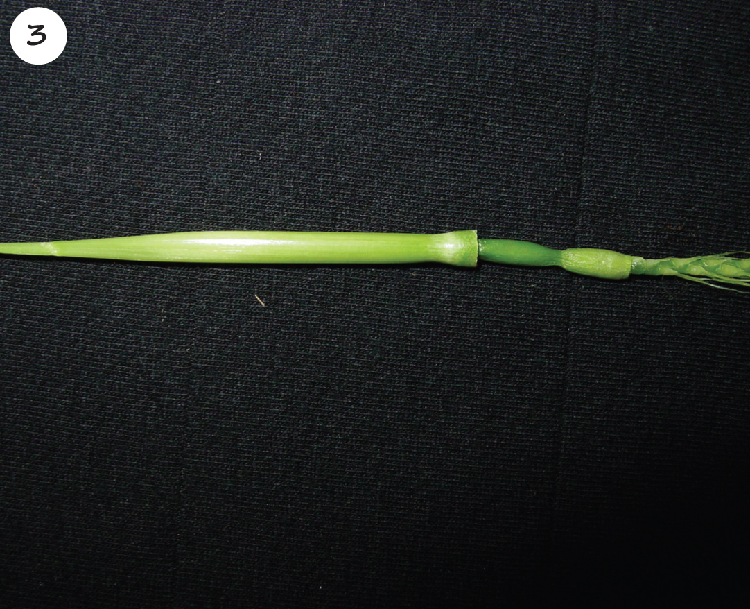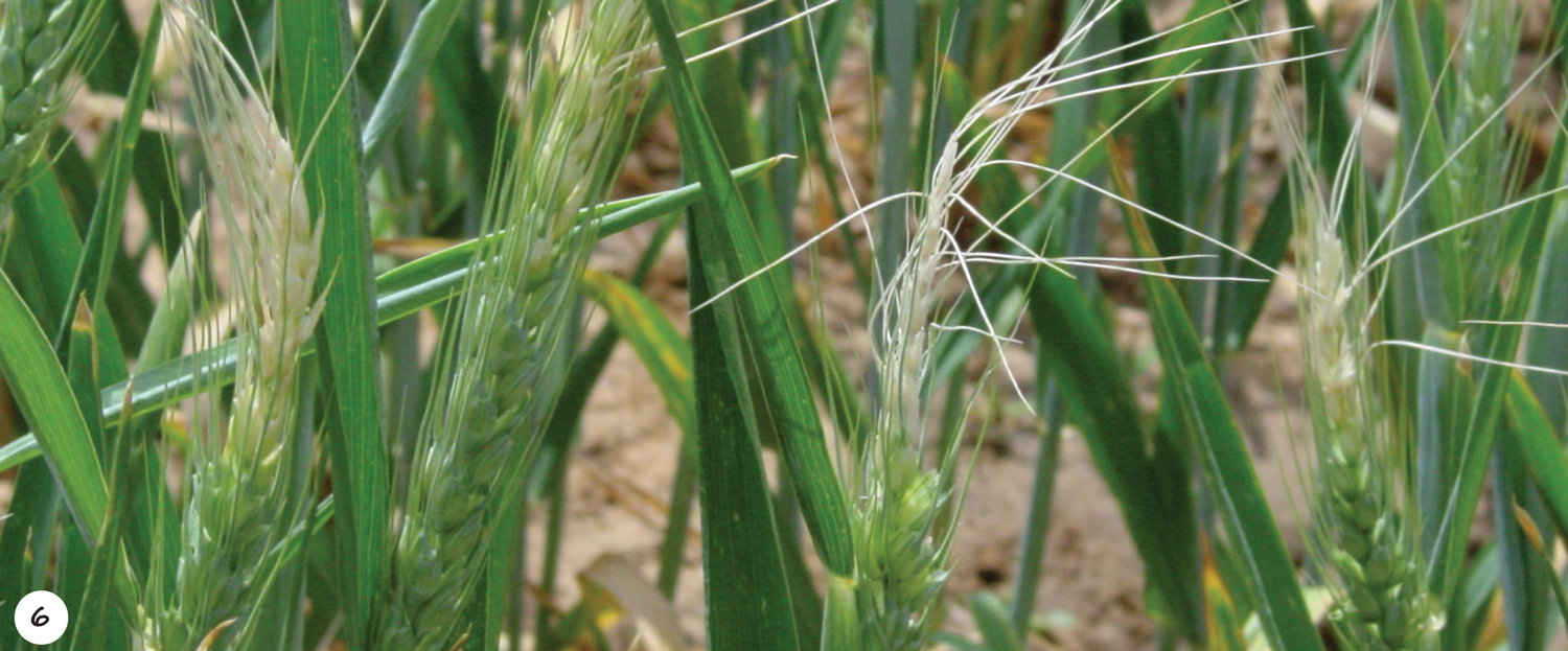 Sweepslag; ’n dooie wit aar; ’n aar wat aan die kant van die vlagblaarskede uitbars; en ’n wit aar wat uit die vlagblaarskede verskyn.