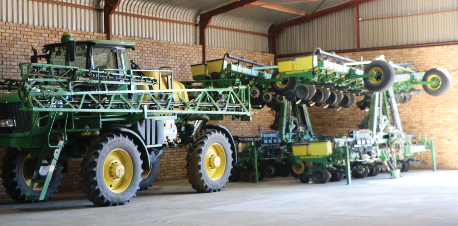 Die Viljoens bestuur ’n indrukwekkende vloot trekkers, bakkies en vragmotors, waarvan sommige al meer as 20 000 ure gewerk het. Hulle glo nie in roekelose vervanging nie, maar eerder in die optimale benutting van elke masjien. ’n Eie span werktuigkundiges en streng instandhouding beteken dat selfs ouer trekkers steeds produktief is. John Deere se Operations Center word gebruik om trekkers se werkure en diens­rekords digitaal te monitor, terwyl plaasbestuurders en WhatsApp-verslae help om alles op Excel vas te lê. Die vloot bestaan uit ’n verskeidenheid trekkers van 75 kW tot meer as 300 kW, aangevul deur selfaangedrewe spuite en stropers vir mie­lies en sojabone. Die beleid is om trekkers nie sommer blindelings te vervang nie, maar eers wanneer dit finansieel en prakties geregverdig is. 9 000-reeks trekkers lewer gemiddeld 1 700 tot 2 000 ure per jaar en een word elke jaar vervang. Die Viljoens probeer om trekkers na sowat 6 000 ure te vervang. Die 200 kW-trekkers word elke vierde of vyfde jaar vervang na gelang van hul finansiële posisie. “Ons het heelwat kleiner trekkers, met 20 000 ure of meer, wat ligte take verrig.”