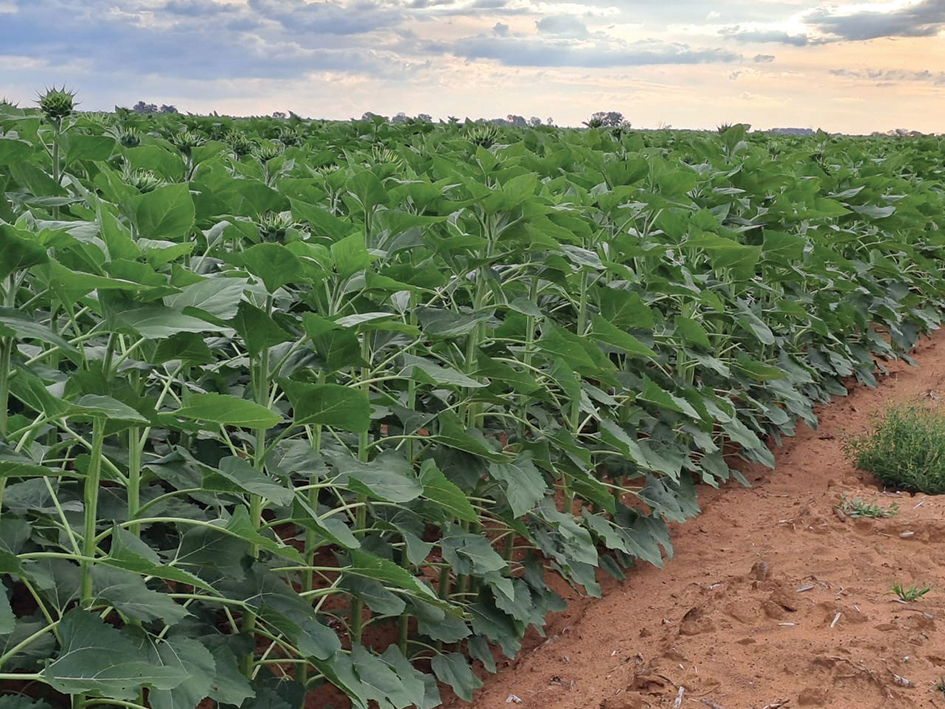 Gemiddelde reënval op die plaas vir die 2024/2025-seisoen was ongeveer 640 mm. Hy moes egter sy planttyd ’n bietjie aanpas omdat die reën skaars was aan die begin van die seisoen. Die Clearfield-sonneblom is eers in die eerste week van die nuwe jaar met ’n Equalizer Wide Span geplant teen ’n plantpopulasie van 55 000 plante/ha. Hy het op 15 Mei gestroop met ’n Claas Trion.