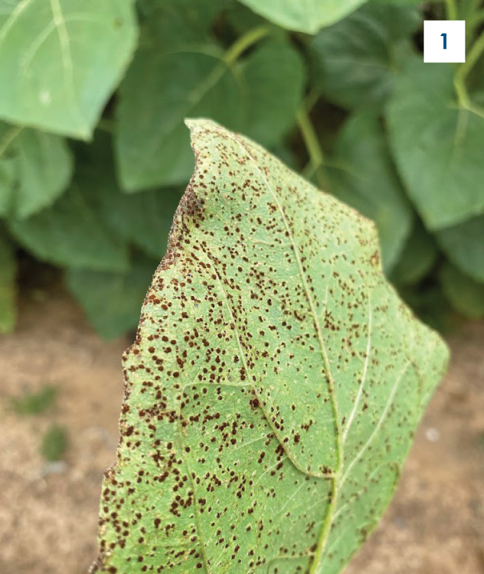 Notably, southern blight, a stem disease caused by Agroathelia rolfsii and often mistaken for Sclerotinia basal rot caused by Sclerotinia sclerotiorum, was observed at five of the 14 sunflower sites. This is an increase from last season, although with very low incidences (ranging from 2 to 8%).