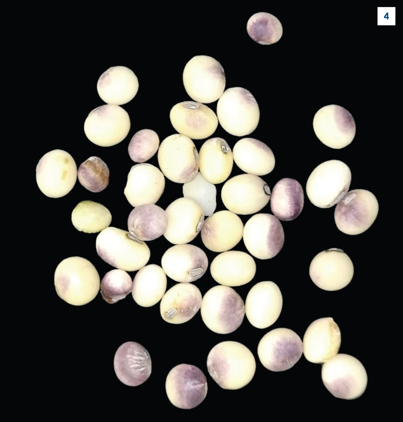 Cercospora seed stain symptoms, where purple discolouration on the seed surface is visible.
