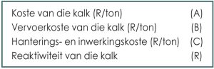 Volgens die Fertasa-bemestingshandleiding kan produsente die volgende manier gebruik om die mees gepaste kalkbron te kies wat prys, kwaliteit en afstand betref.