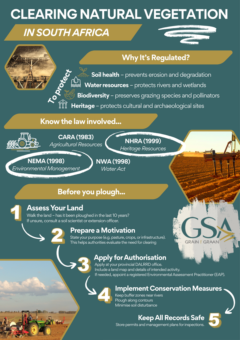 Together, these laws form an integrated framework that promotes responsible and sustainable agricultural development. Compliance with each act is not merely a bureaucratic exercise, it represents a shared commitment to stewardship, ensuring that South Africa’s natural and cultural resources are protected for future generations. By approaching land clearing through careful planning, environmental consultation, and legal compliance, producers play their part in building a sustainable agricultural sector – one that balances short-term needs with long-term objectives.