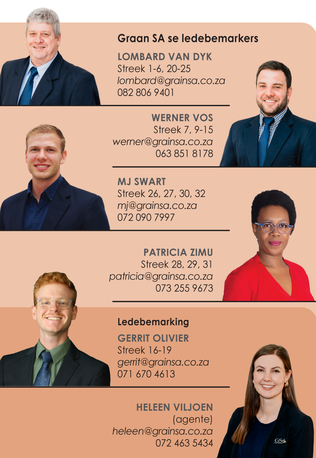 Die organisasie is in die proses om ’n ledeportaal te ontwikkel waarop lede hul staat en opsomming van betalings kan sien. “Ons hoop om binnekort die goeie nuus te gee dat lede hul heffingstatus op die Graan SA-ledeportaal kan nagaan,” het hy afgesluit.