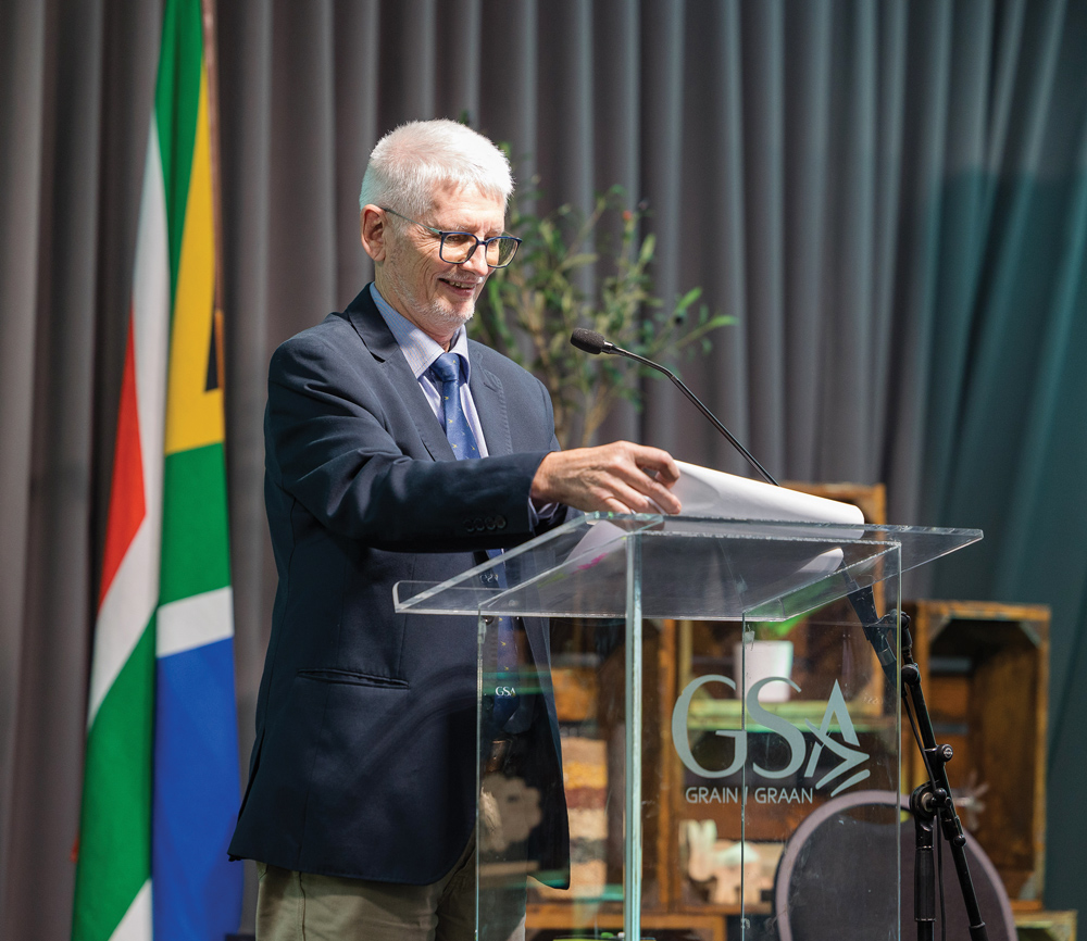Die Minister van Landbou, John Steenhuisen, se toespraak het die werklikheid waarmee graanprodusente daagliks werk, duidelik er­ken: ’n bedryf wat die land se voedselsekerheid dra, maar toene­mend onder druk verkeer. Hy het die belang van graanproduksie binne die breër ekonomie beklemtoon en dit duidelik gestel dat voedselproduksie nie van plaaswinsgewendheid geskei kan word nie.