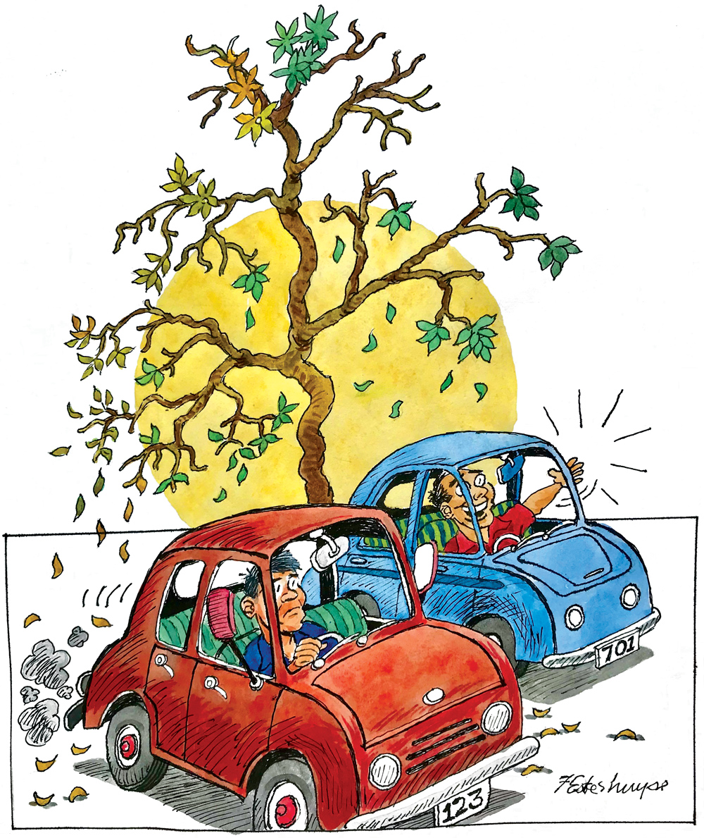 Die lig slaan oor na groen en die vrou met haar selfoon teen haar oor is eerste deur die kruising. Of sy haar telefoniese skermutseling gewen het, bly onseker. Op haar hakke, die man wat daarvan hou om op sy stuurwiel te trommel. Die kar agter my gee twee kortaf toete, wat in enige taal beteken moenie sit en “hum-en-ha” met ’n groen lig voor jou nie.