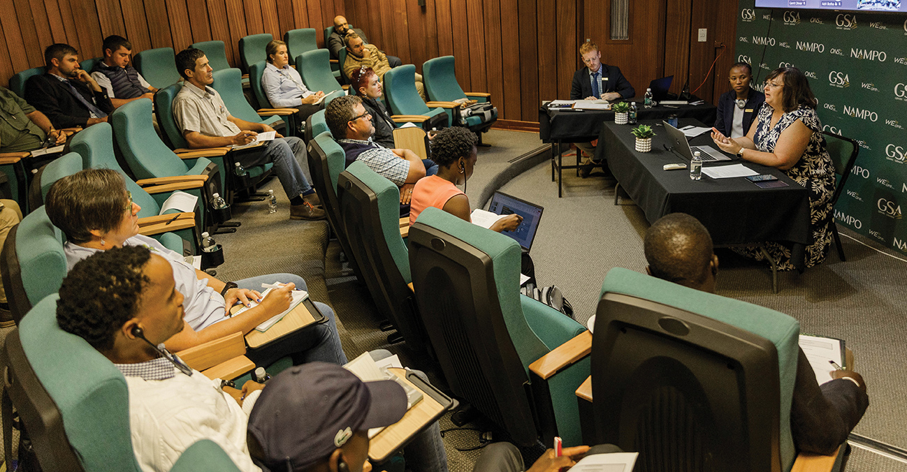 Mike Ellis, bestuurder: Navorsingskoördinering en NAMPO Tech, het met die groep gesels oor die samewerking tussen die bedryf en universiteite.