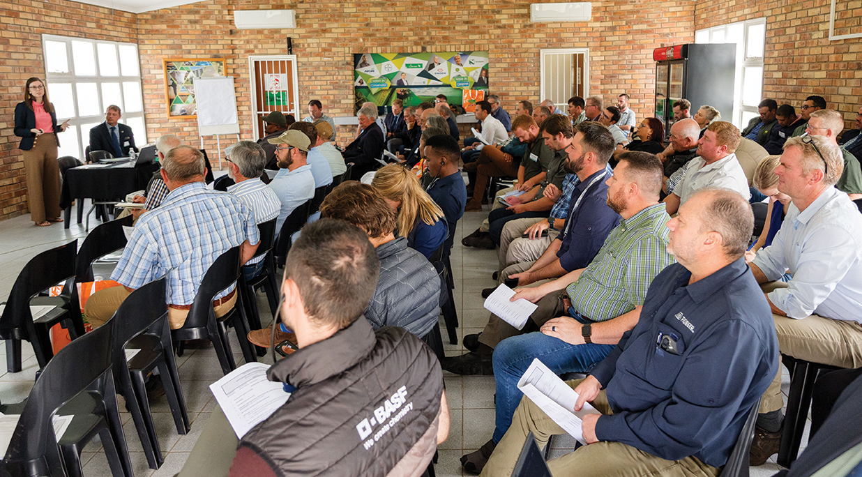 Stompie Olivier, topproduksie-sonneblomwenner in Graan SA se Groei vir Goud- nasionale opbrengskompetisie, het met die groep gesels en wenke gedeel: Plant sonneblom op mielies, hou by plantdatums, gee aandag aan stand, volg ’n standaardspuitprogram en gaan eerder vir kleiner koppe om dowwe pitte te beperk.
